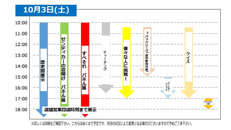 ウィザーズの人やワンダーグーのスタッフさんと各フォーマットで対戦できるイベント、クイズ大会、じゃんけん大会などの参加型イベントと、すべそれパネル・マジックの歴史パネル・ゼンディカーの夜明けアートパネルなどの展示が行われている楽しげなイベントとなっている。